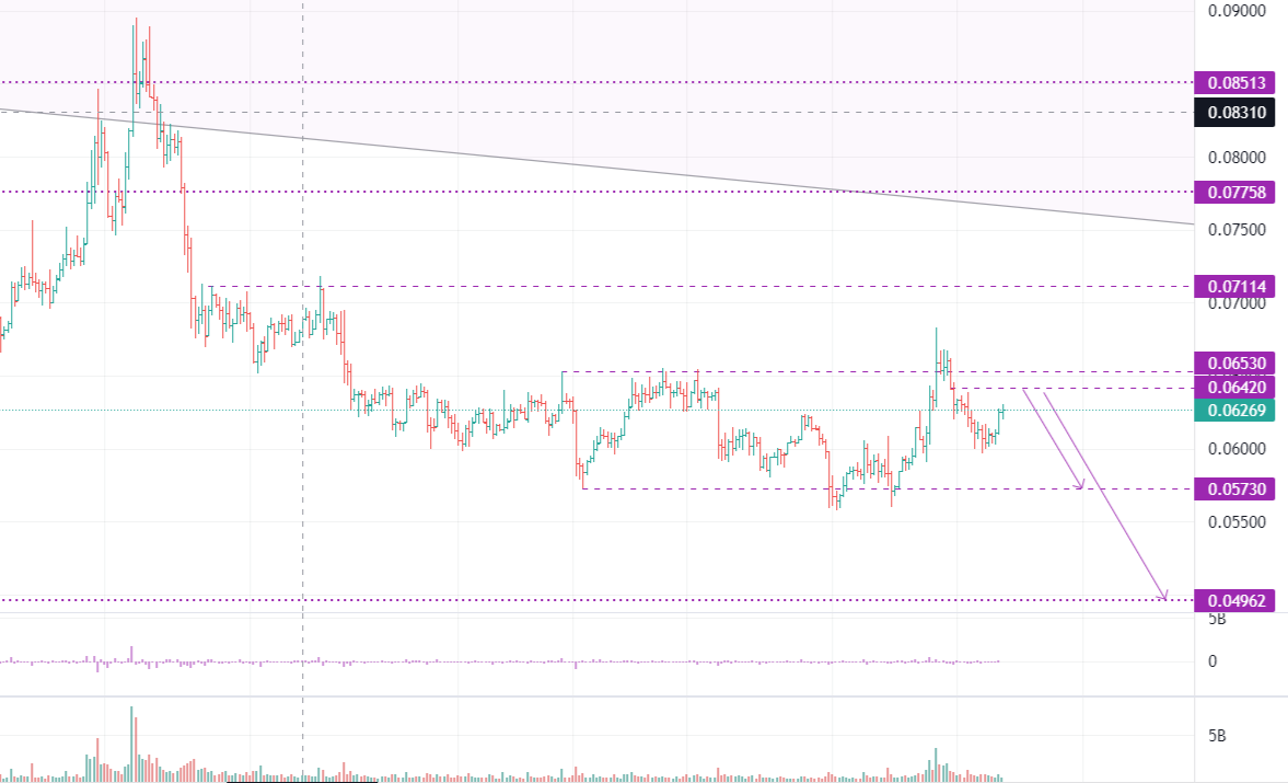 В противном случае, ожидаю закрепление цены выше 0.0653 для повторного теста продавца на уровне ~0.0711.