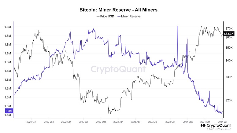 Под продажу попали как свежедобытые, так и монеты из запасов. В результате совокупные резервы майнеров сократились до 1,82 млн BTC – это худший результат с января 2022 года.