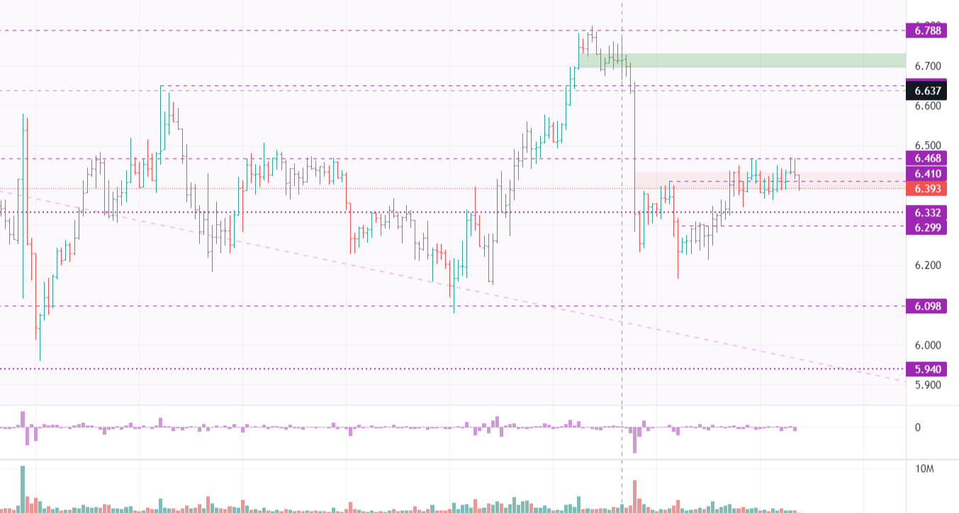 Перейдем с глобального к локальному часовому графику — ключевой уровень на сегодня рассматриваю 6.470, в случае закрепления цены выше то целями роста могут стать 6.650/6.700.