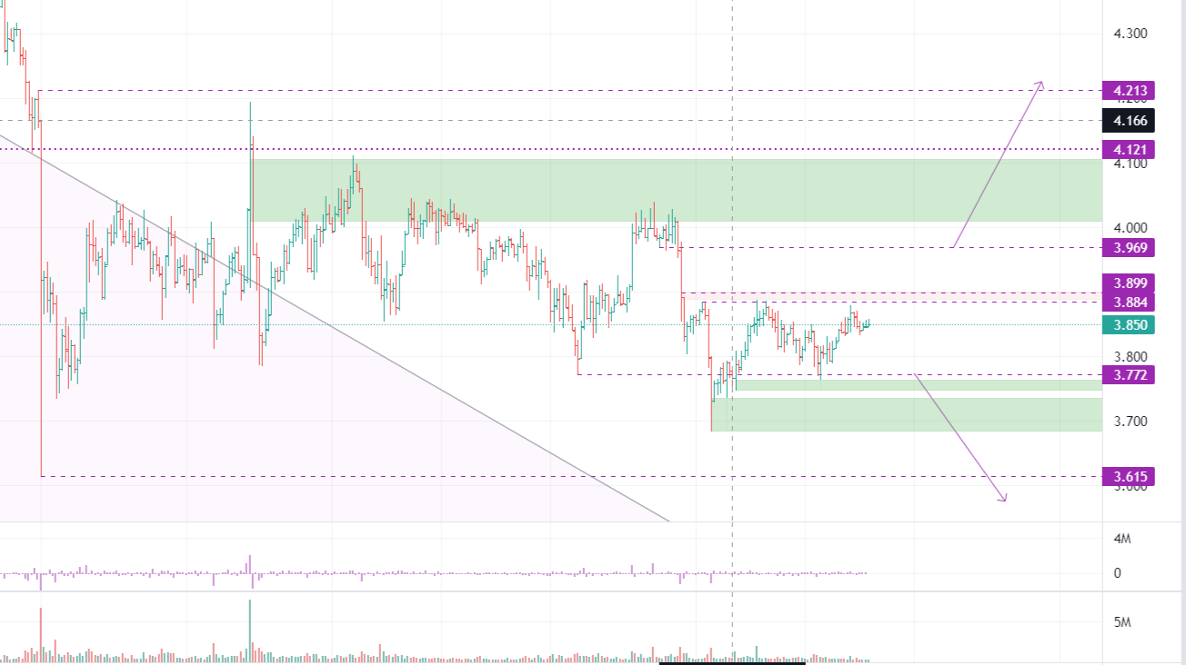 Ключевая зона на сегодняшний день по паре WAVES/USDT висит между 3.900-3.880. Цена несколько раз тестировала данную зону продавца и на протяжении трех дней образовала узкий коридор на часовом графике. Развязка может случиться при окончательном поглощении продавца на уровне 3.970. Тогда рост пары неизбежен и новыми целями роста могут стать 4.050/4.115/4.215.