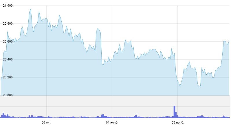 Федеральный комитет по открытым рынкам (FOMC) — орган, который определяет денежно-кредитную политику США, повысил процентные ставки на 75 базисных пунктов четвертый раз подряд. Следом вышел пресс-релиз, в котором чиновники перечислили признаки будущего смягчения политики. Новость сначала вызвала оптимизм инвесторов, но вскоре произошел обвал рынков. Биткоин смог удержать важный уровень $20 тыс..