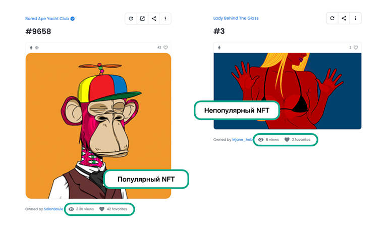 Используйте статистику NFT на торговой площадке, такую как сколько раз NFT был отмечен лайком или добавлен в чье-то избранное. Это даст вам возможность купить популярный NFT, который все еще торгуется по привлекательной цене входа.