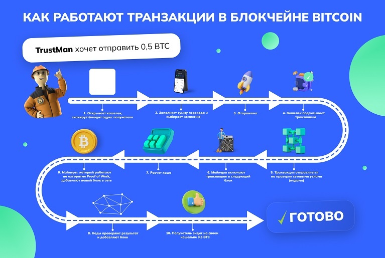 Надеюсь, у нас получилось детально показать принцип работы транзакций в блокчейне Bitcoin. Подписывайтесь на Trustpool News — там только проверенная, полезная инфа о крипте и майнинге =)
