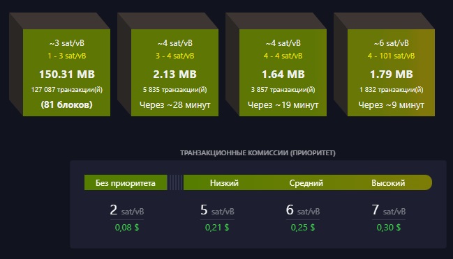 - Какая сегодня комиссия сети и примерная скорость обработки транзакции: перейти