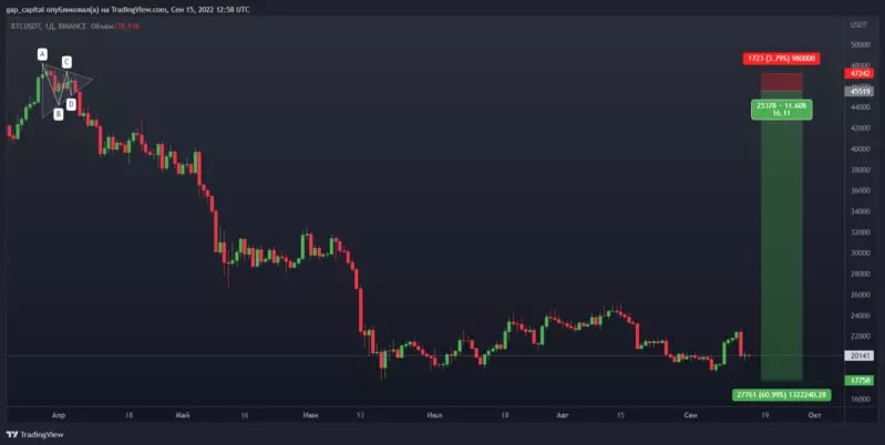- Выбрать монету. Нужно просматривать много активов, чтобы не зацикливаться на чем-то одном. Цель — найти максимально хороший паттерн с подтверждением начала тренда. В качестве дополнительного сигнала можно использовать график доминирования биткоина.